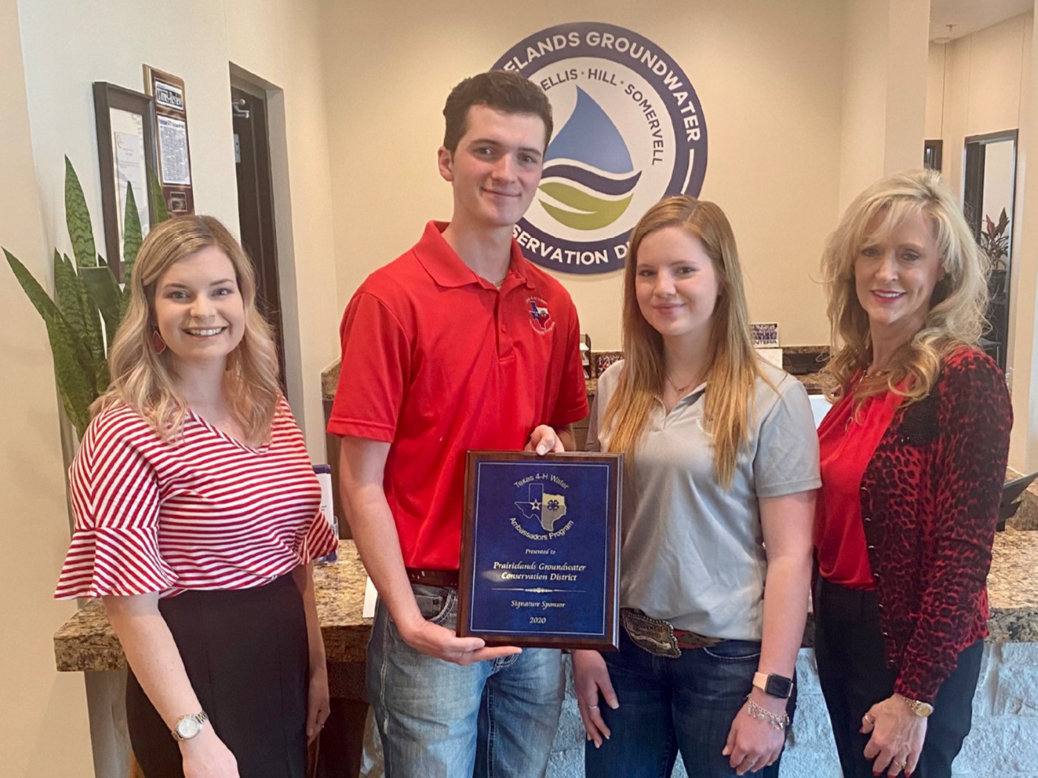 The Texas 4-H Water Ambassadors Program was formed in 2017 in an effort to educate youth about water resources in Texas. Every spring, up to 30 high school youth are selected to participate in a summer 4-H2O Leadership Academy. Over eight days, students journey more than 2,200 miles and learn how water is collected, conveyed, treated, conserved and managed to meet the need of our economy and citizenry. Now in its fourth year, the 4-H Water Ambassadors Program continues to grow in number and is gaining recognition and support from the Texas water industry. To date, 158 youth have participated in the Program representing more than 65 counties. Prairielands GCD is proud to support this youth leadership organization and provide an opportunity for young people to nurture their passion and knowledge for management of natural resources in Texas. The District currently has three ambassadors representing Hill and Johnson Counties.